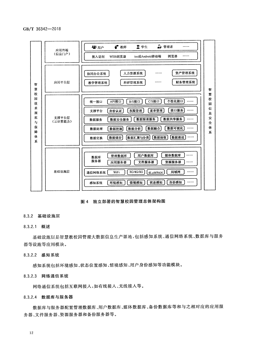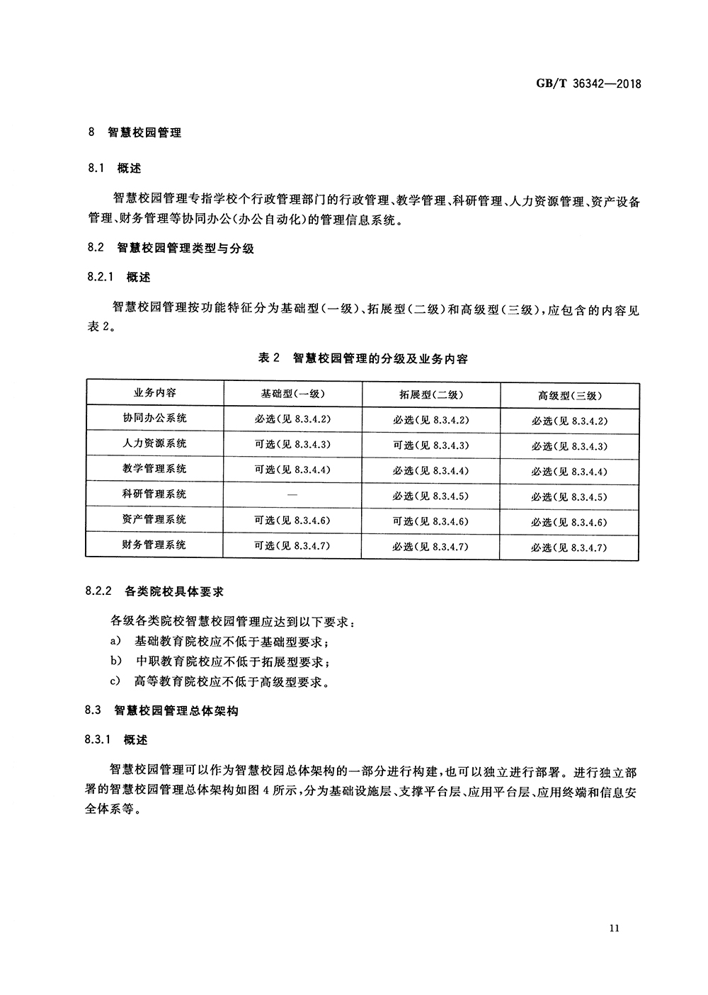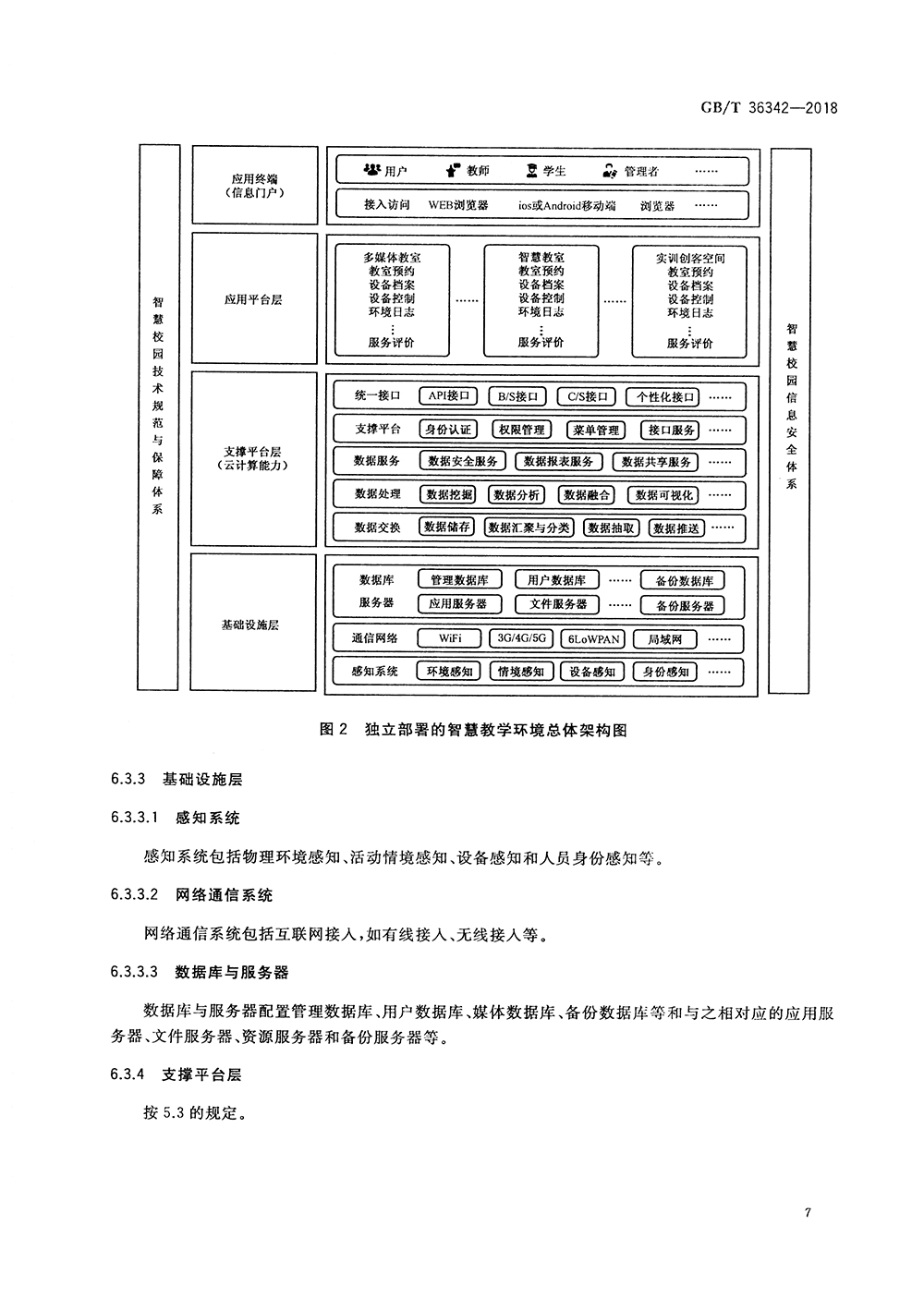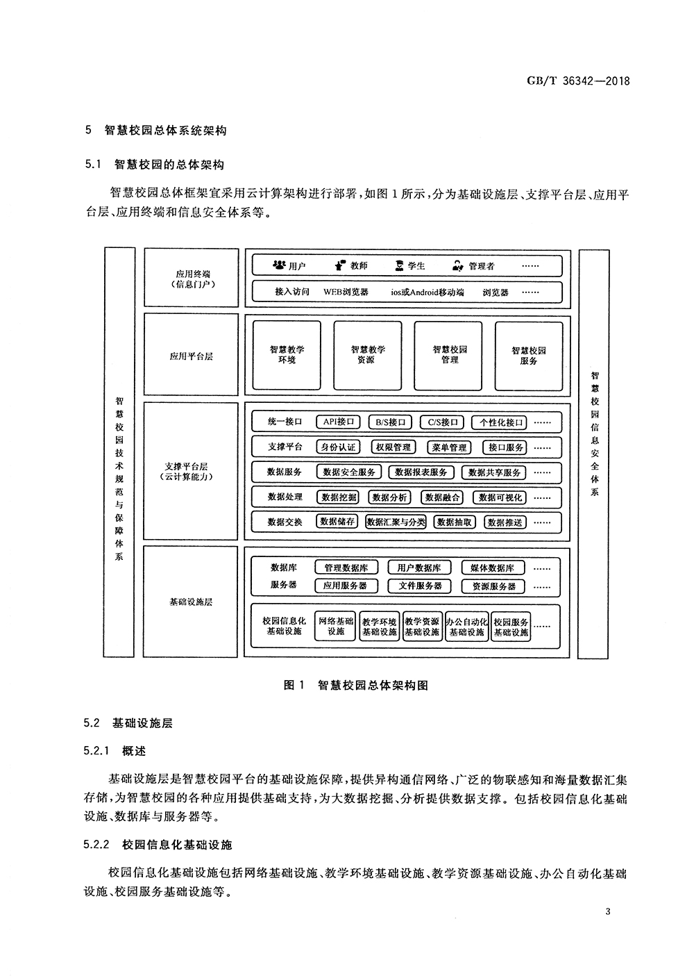 【概要描述】本標準規(guī)定了智慧校園建設的總體框架,包括智慧教學環(huán)境、智慧教學資源、智慧校園管理、智慧校園服務、信息安全體系等的系統(tǒng)架構及基本要求。